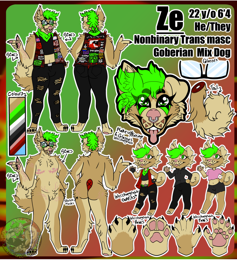 -full body front &back, unclothed full body front & back, head shot, clothes references, bio, colour swatches, & other extra partsWill draw
